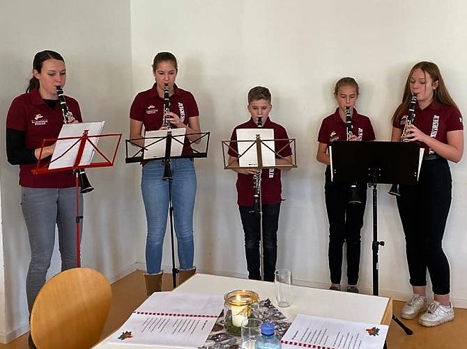 Am 2. Adventssonntag durften die Klarinetten der Jungmusik Weiler die Senioren Adventfeier des Sozialarbeitskreises Weiler musikalisch umrahmen. Nach 2 Proben freuten sich schon alle auf diesen Auftritt und so gestalteten wir alle zusammen einen wunderschönen vorweihnachtlichen Nachmittag. Als dann auch noch der Nikolaus für jeden von uns ein kleines Geschenk mit dabei hatte, war dieser Tag natürlich perfekt. Wir möchten uns an dieser Stelle bei allen für die tolle Verpflegung bedanken, die leckeren Weihnachtskekse und natürlich auch für die schöne vorweihnachtliche Stimmung aller Anwesenden.