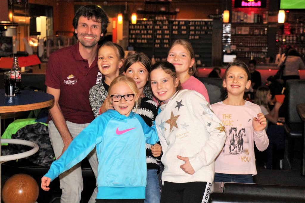Vergangenes Wochenende war es wieder soweit … unser alljährliches Kegelturnier wurde kurzfristig in ein Bowlingevent umorganisiert und so reisten wir mit 36 Musikschülern aus Weiler ins Bowlinghouse nach Hohenems. Nachdem jeder seine Bowlingschuhe ausgefasst hatte und gefühlt jeder 2. doch kleinere Schuhe benötigte, konnte es um 17.00 Uhr endlich losgehen. Während die jüngeren Musikanten mit einer Seitenbegrenzung ihr Glück versuchten, wurde bei den älteren Musikanten die seitliche Abgrenzung vorerst nicht aktiviert. Nach ca. 1/2 Stunde haben wir jedoch feststellen müssen, dass auch die älteren Musikanten besser MIT einer seitlichen Begrenzung spielen und somit konnten alle Teilnehmer auch ein ordentliches Ergebnis erzielen. Nach 2 Stunden «harter Arbeit» wurden wir anschliessend noch köstlich verpflegt – Pommes, Chicken Wings, Chicken Fingers und panierte Zwiebelringe standen auf dem Speiseplan. Anschliessend traten wir zusammen wiederum die grosse Heimreise an und konnten alle Musikschüler am Bahnhof in Klaus den Eltern sicher und wohlbehalten «übergeben». Einige von Ihnen hatten am nächsten Tag sicher ein wenig «Muskelkater…