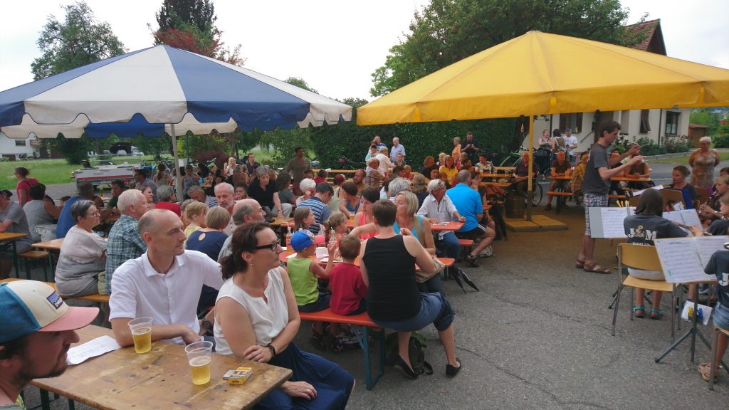 Am 23. Juni fand, wie bereits zur Tradition geworden unser Dämmerschoppen statt. Der Wettergott stellte uns auch in diesem Jahr wieder auf die Probe. Kurz vor 19 Uhr kam ein Regenguss von Oben. Pünktlich zum Beginn um 19 Uhr war es dann aber wieder trocken.